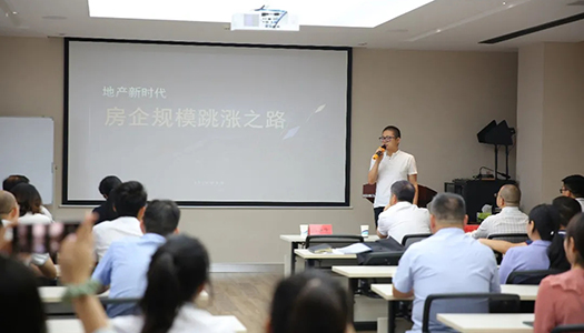 ▲ 鄭州地產(chǎn)集團都市開發(fā)有限公司 總經(jīng)理 張林 試講《房企規(guī)模跳漲之路》