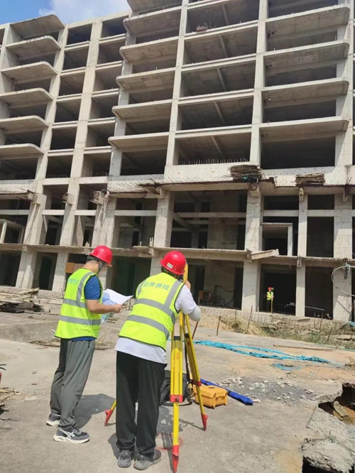 面對多處未竣工的復雜現場環境和時間緊任務重等諸多因素,測繪人頂住壓力,認真將地下車庫、墊層、筏板、地上住宅和頂板等一一做出分類測繪。