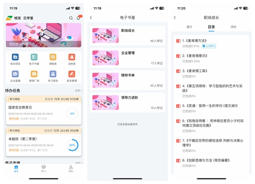 在量見*云平臺搭建“電子書屋”,結合員工學習地圖的要求,設置“職場成長”“領導力進階”“企業管理”等主題閱讀專區,共計70余本電子書籍,員工在“量見*云”平臺閱讀,積極撰寫讀書感悟、評論等,通過完善閱讀服務資源,為員工隨時隨地開展閱讀創造便利條件。