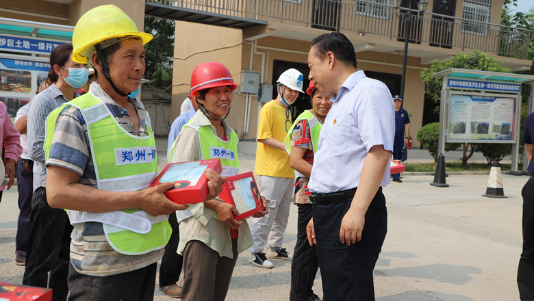 為切實(shí)做好防暑降溫工作,給項(xiàng)目工友送去清涼,鄭州市總工會(huì)精心準(zhǔn)備了夏季防暑降溫用品和礦泉水。市總工會(huì)、消防救援支隊(duì)領(lǐng)導(dǎo)為一線職工送去防暑降溫用品,慰問看望一線職工,將工會(huì)組織的關(guān)懷送到職工心坎上。