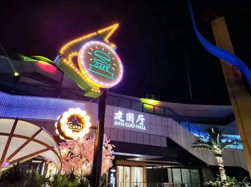 星空夜市融合位于奧體中心核心區域東下沉廣場,毗鄰長椿南路,融合市井長巷的煙火氣,以鄭地奧體建國飯店高標準餐飲、服務水準為依托,結合地域特色,提煉美食精華,為廣大市民提供超多品類風味美食。同時,傾情打造雨林風夢幻空間美陳,邀您品美食之余,于霓虹造景中享受拍照打卡樂趣,解鎖更多夜市新玩法!
