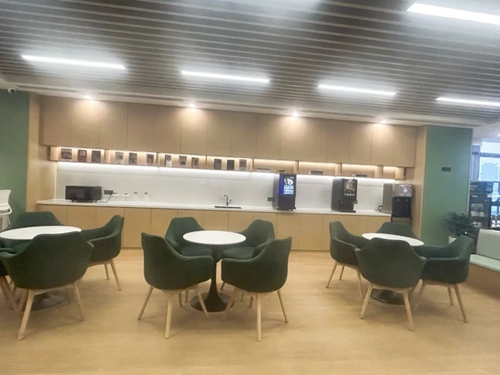 園區餐廳:規劃公共就餐區、卡座就餐區、餐包就餐間等,可容納約1000人同時就餐,滿足各類用餐需求