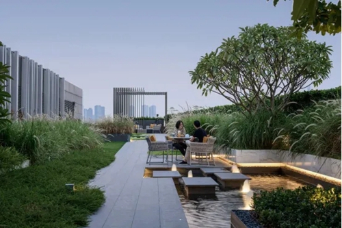城發(fā)中心3樓露臺打造空中花園,融社交休憩空間、開放式休息區(qū)域、綠色商務空間于一體,為企業(yè)打造公共功能空間的附加值。