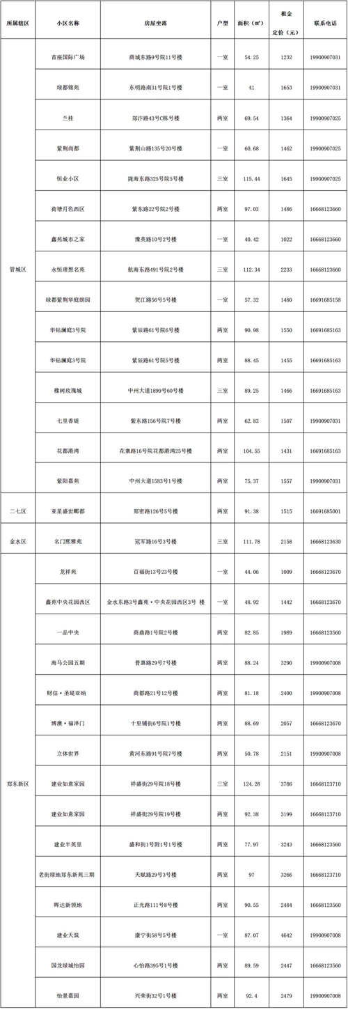 本批次配租房源共計32套(61間),其中鄭東新區15套(28間)、管城區15套(28間)、二七區1套(2間)、金水區1套(3間)。水電費均為民用水電標準,房源精裝修交付,周邊配套設施齊全,配備家具家電,拎包入住,后續房源將根據裝修進度情況陸續配租。運營單位為鄭州城發安居有限公司。聯系電話:4001261666。