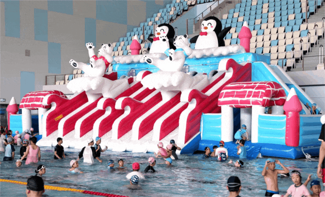 游泳和滑冰是最適合夏日的運動。奧體中心的游泳館內,夏日限定的趣味水上充氣城堡讓小朋友可以盡情玩耍、享受水花飛濺的專屬樂趣。室內冰場可以感受獨特的酷爽體驗,在冰面飛馳中感受透心涼意。