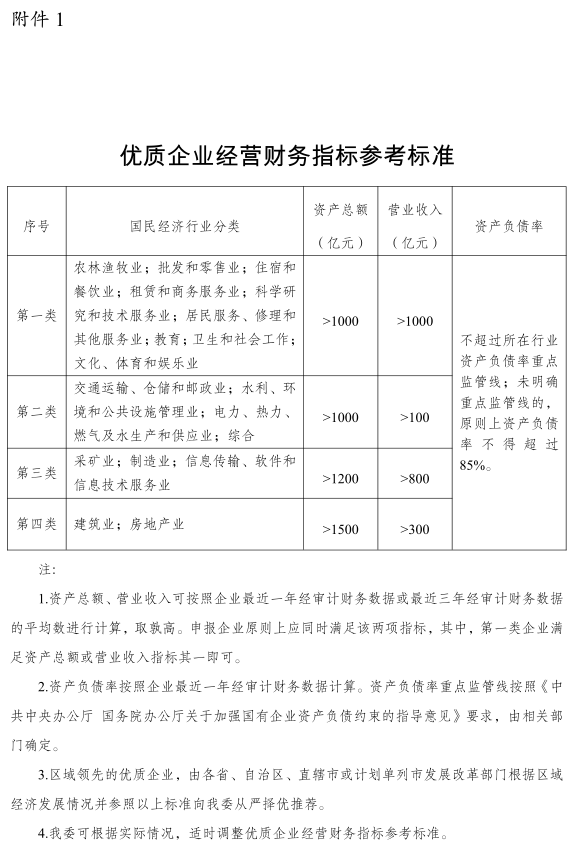 附件:1.優(yōu)質(zhì)企業(yè)經(jīng)營財務(wù)指標參考標準