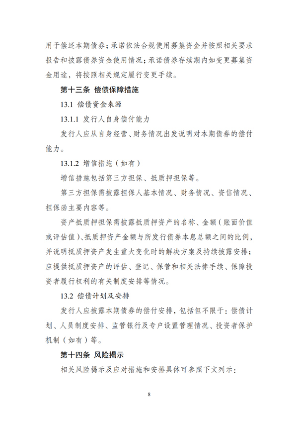 五、各期債券發(fā)行前,發(fā)行人應(yīng)公開披露募集資金擬投資的項目清單和償債保障措施。